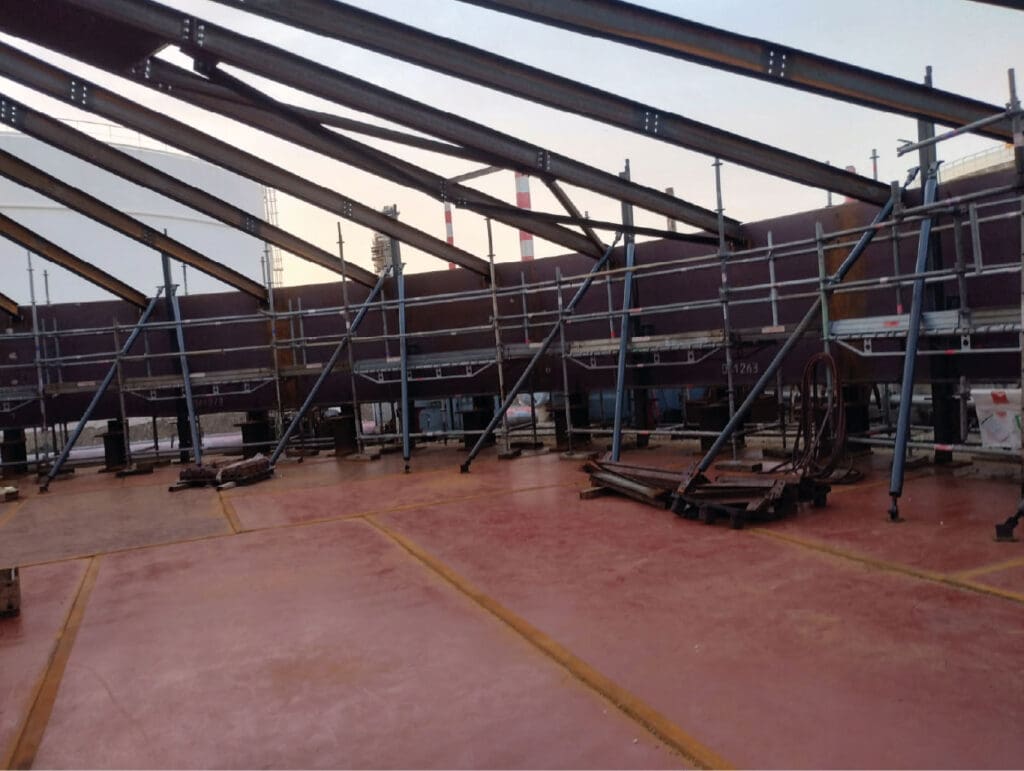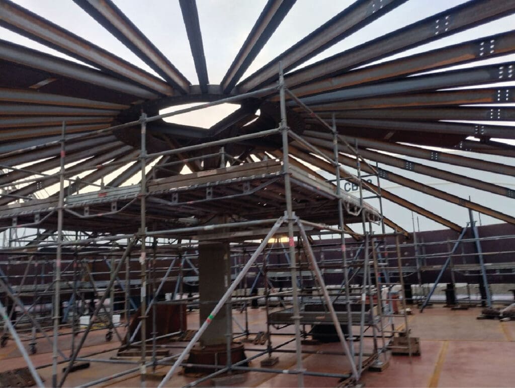 Le bac sera équipé d’un escalier hélicoïdale, une passerelle de toit, une couronne incendie ainsi que les lignes de raccordement au réseau.